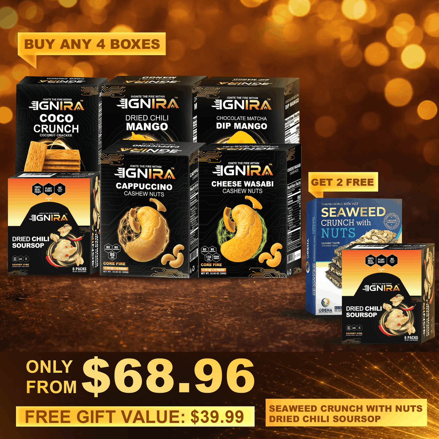 Buy Any 4 Boxes of Snacks Combo (Prices from $68.96) + Get 2 Free Seaweed Crunch with Nuts Gifts (10.7oz) – Only $68.96 (Free Gift Value: $39.99)