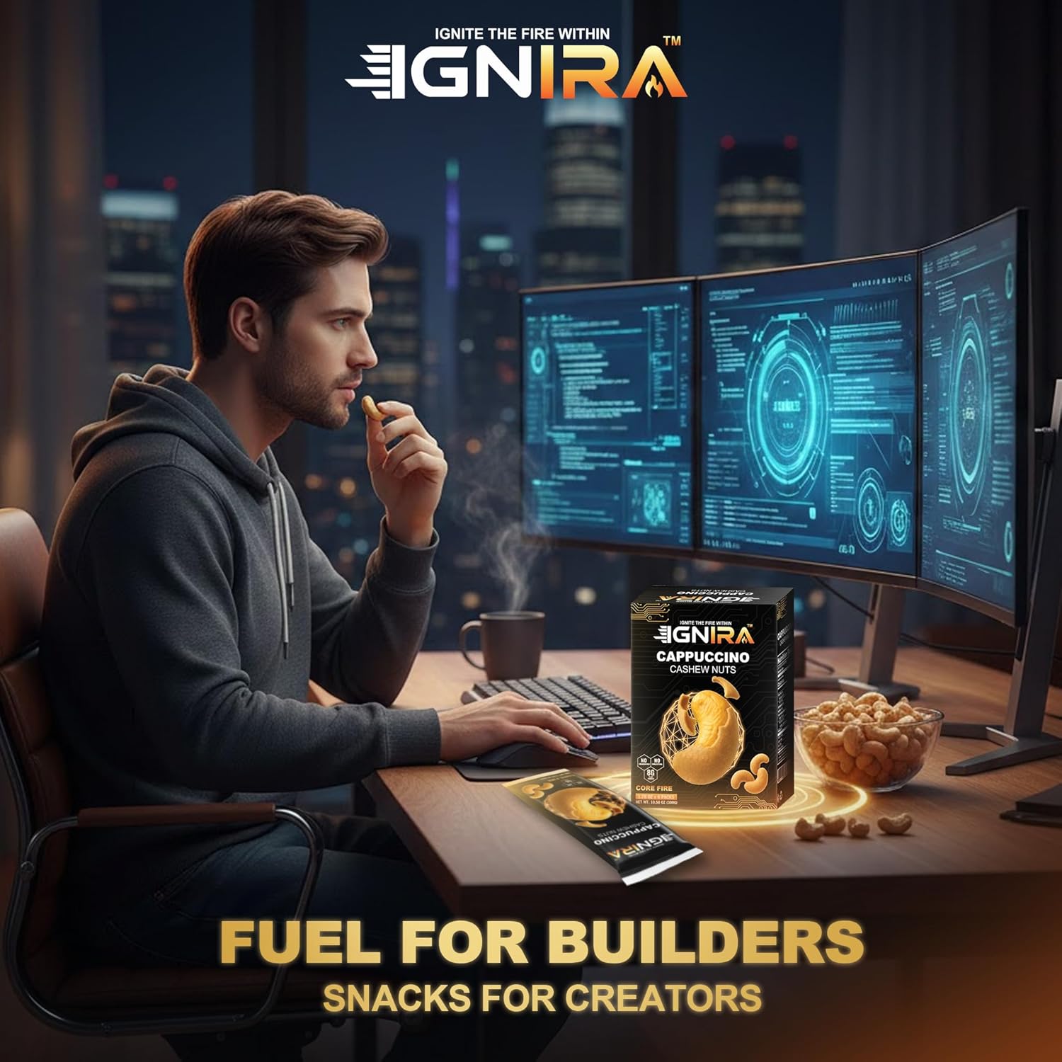 • Coffee-Inspired Cashew Snack with Rich Aroma: IGNIRA Cappuccino Cashews blend crunchy roasted cashew nuts with smooth cappuccino flavor, creating a coffee-inspired snack that’s aromatic, balanced, and satisfying, perfect for those looking for flavored nuts or gourmet snack options.