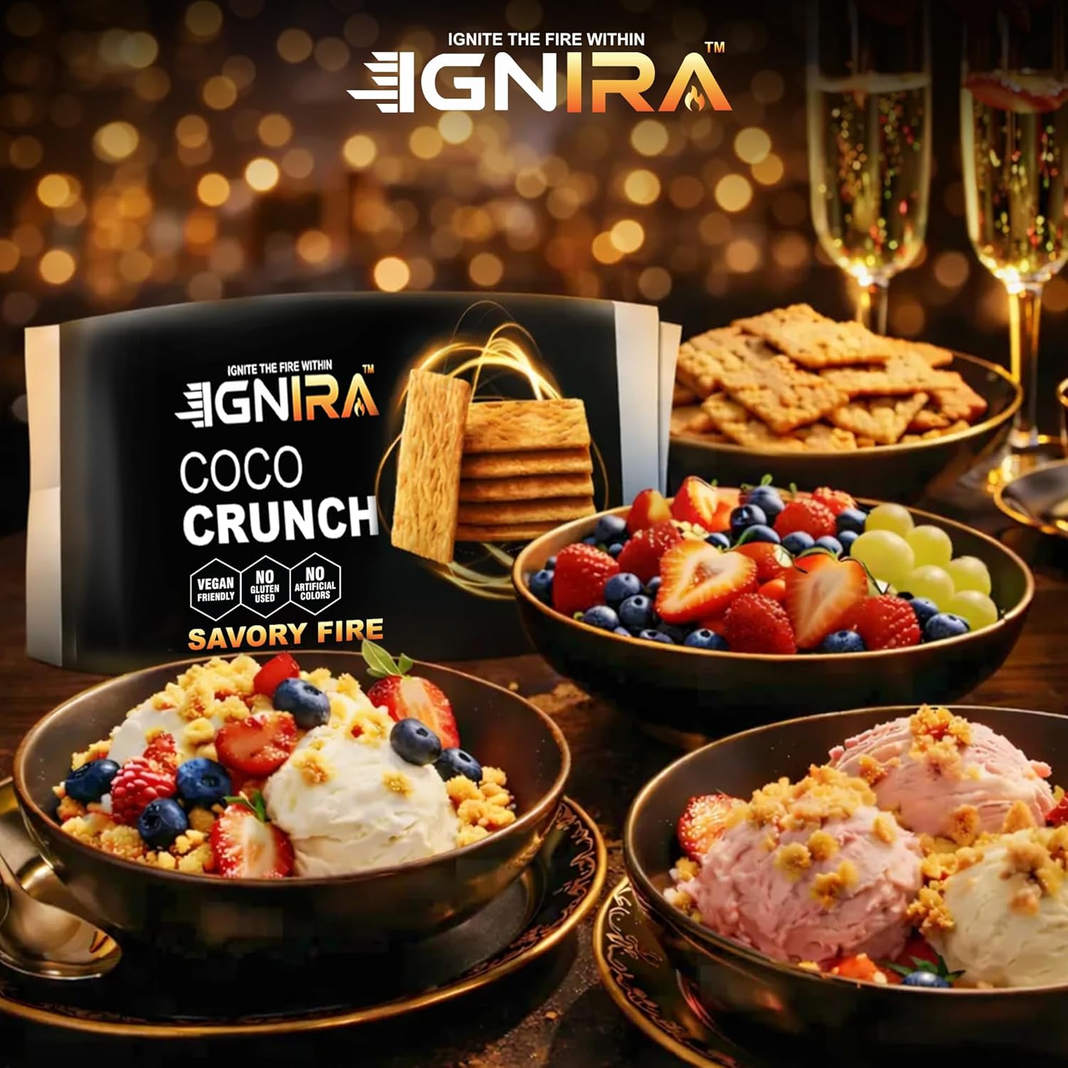 - Dare the Fire, quiet Fuel for Creative Minds: Some snacks chase intensity. IGNIRA chooses intention. COCO CRUNCH belongs to the SOUL FIRE collection, crafted for creators who value steady rhythm, thoughtful moments, and flavor that supports focus without noise.