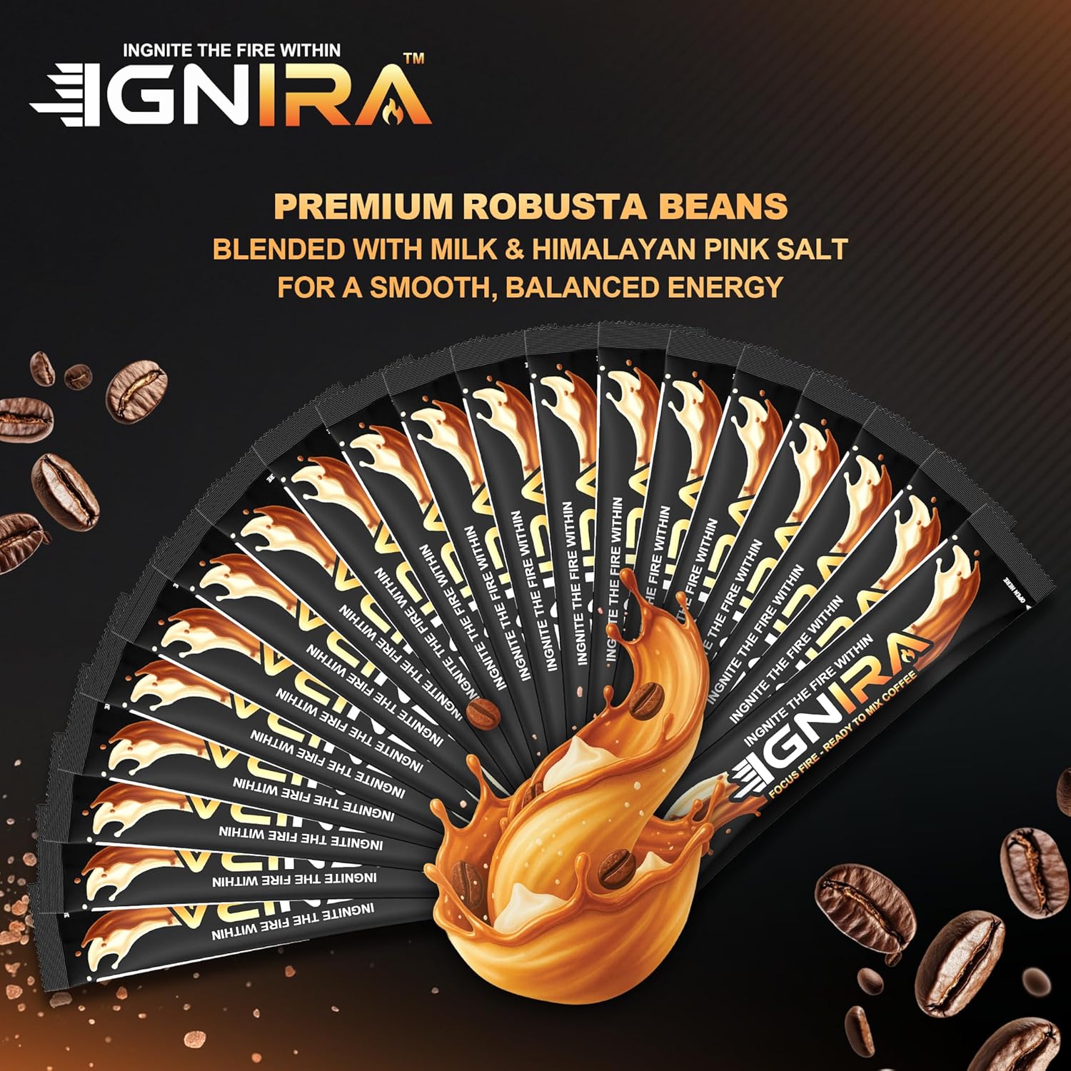 IGNIRA Himalayan Salted Coffee, Hot or Iced Milk Coffees, 20 Single-Serve Sticks (12.69 oz)